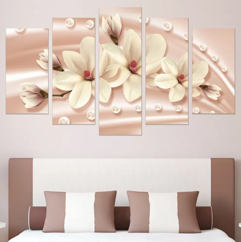 0778 Картина пано от 5 части Абстракция с магнолии и диаманти